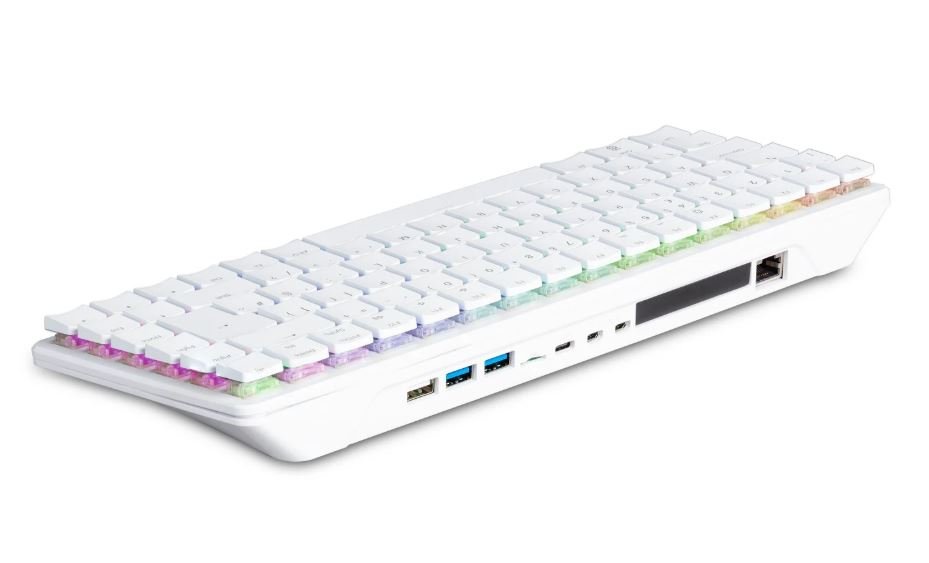 The company also mentions that the device supports custom low-profile keycaps. It supports most aftermarket keycap sets, and a key puller is included for easy customization.