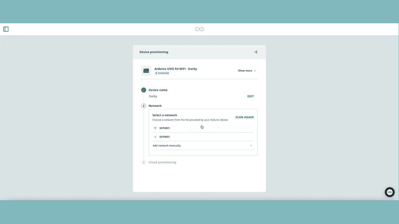 Using the Arduino IoT Cloud Remote mobile app (available for phones or tablets), the setup process becomes intuitive: