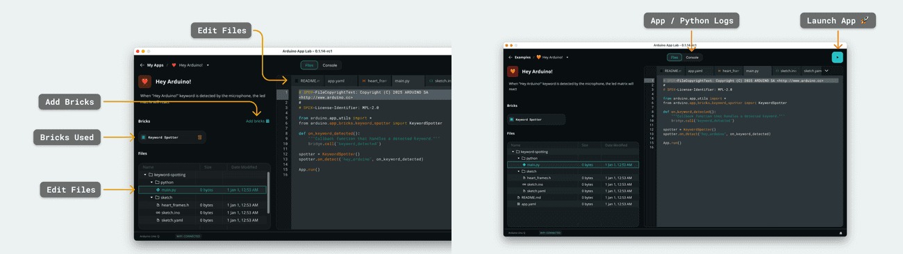 Arduino App Lab Edit and Launching