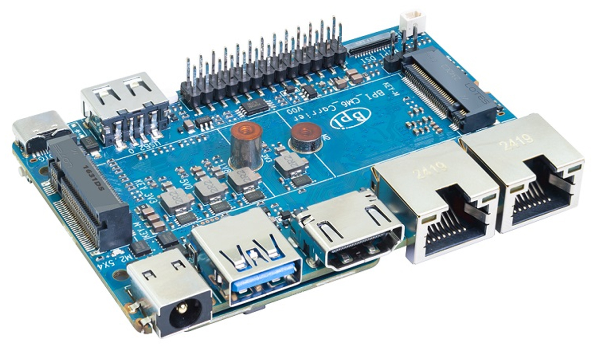 The module provides one USB 3.0 port and two USB 2.0 ports, along with a 5-lane PCIe 2.1 interface for SSDs or expansion cards. Developers also get up to ten UART interfaces and a wide range of GPIO for robotics, automation, and industrial systems. Measuring just 40 × 55 mm, the BPI-CM6 follows the compact CM4/CM5 form factor and is built for harsh environments with an operating range from –40 °C to +85 °C. Since it’s a compute module without onboard connectors, a carrier or IO board is required to access its full set of ports and features.