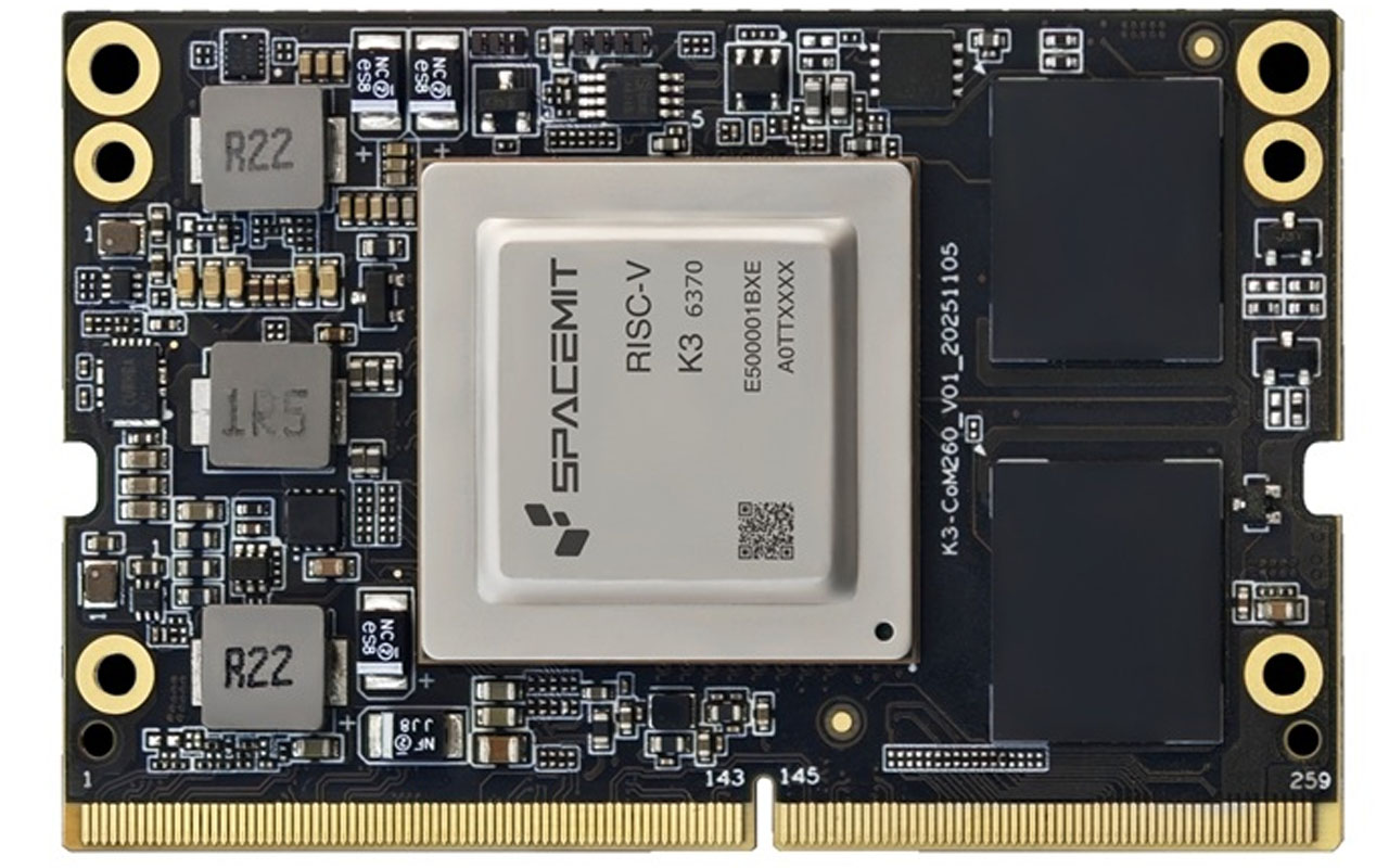 Banana Pi has also released the BPI-SM10, or K3-CoM260, which is an advanced RISC-V-based AI developer kit with high-performance edge computing usage. This module was developed by the open-source community of Banana Pi, and it combines the SpacemiT K3 AI chip, providing a maximum of 60 TOPS of AI performance, and is usable to execute large-scale models with up to 30 billion parameters.