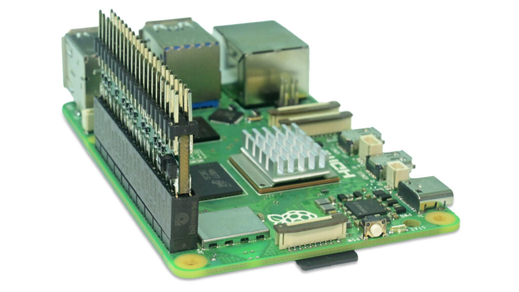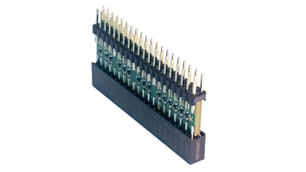 bPiShift is a snap-on 5 V logic level shifter for the Raspberry Pi’s 40-pin GPIO header. It connects to the PIs GPIO header with a female connector and provides a clutter-free interface for 5V devices such as sensors, serial modules, and microcontrollers, making it a compact solution for prototyping without jumper wires or extra boards.