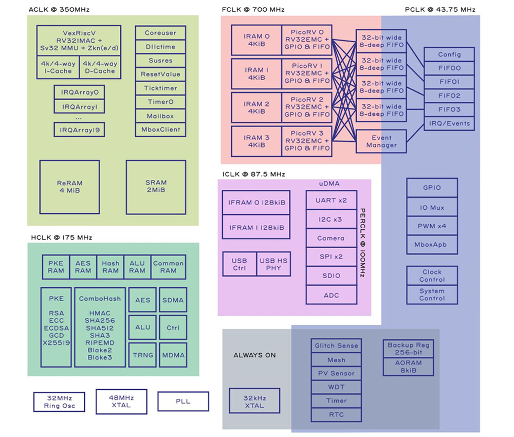The core of the board is the Baochip-1x SoC, which has a VexRiscv CPU that runs at an impressive 350 MHz. It combines 2 MB RAM and 4 MB RRAM (a high-endurance substitute for conventional Flash) to facilitate vigorous operations. The only distinction of the hardware is its special I/O capabilities: it has a quad-core I/O accelerator with a pico based on the PicoRV322 with a speed of 700 MHz. This enables the chip to support complicated peripherals in a highly efficient, yet not exhausting, way for the main processor.
