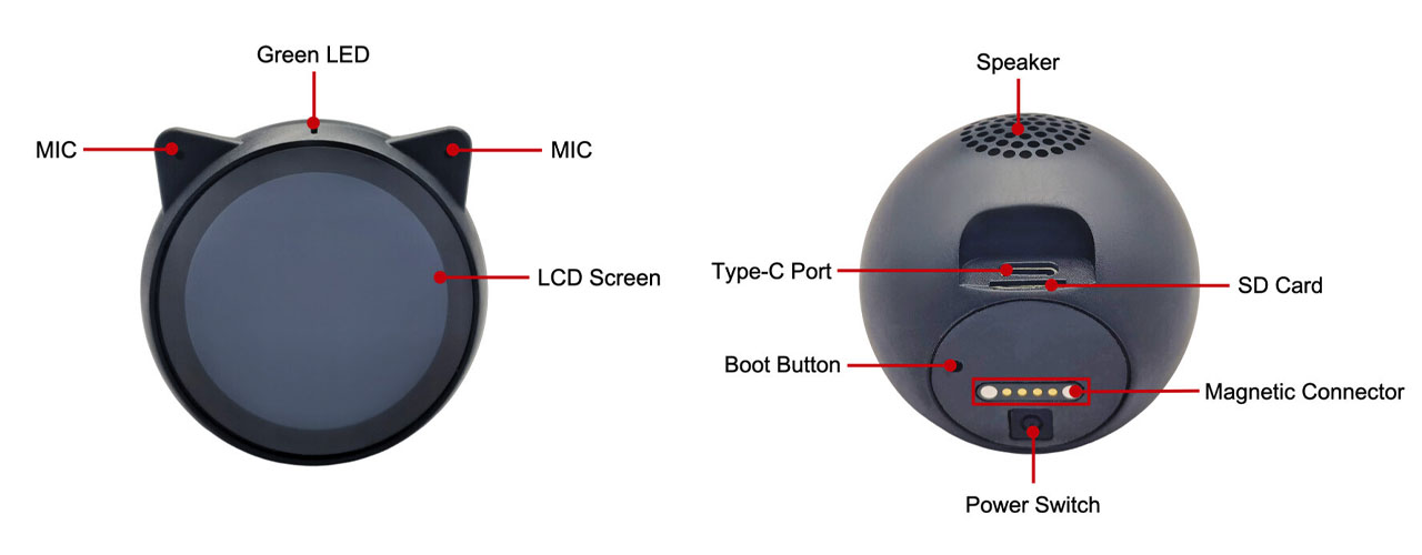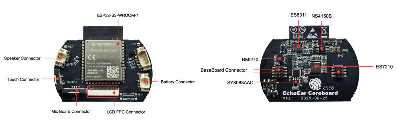 Unlike the LilyGO’s new T-Circle and the Seeed Studio’s SenseCAP Watcher, the user will simply need to use EchoEar by connecting it with a USB-C to power and program it. Espressif offers board support packages (BSPs) and sample applications under ESP-IDF to ease the initialisation of peripherals (LCD, audio, sensors, etc.). It is important to remember that the board is supposed to be intact and that it is v1.0 or v1.2 of the silkscreen (as opposed to powering up without the board and using the wrong silkscreen).