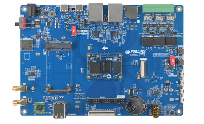 The OK3506J-C SBC complements the FET3506J-C SoM by integrating it with a carrier board that exposes the full range of I/O interfaces. Designed for quick evaluation and prototyping, it enables developers to test and deploy applications more efficiently. Powered by the Rockchip RK3506J with three Cortex-A7 cores and a Cortex-M0, the SBC runs Linux 6.1 and offers a wide selection of interfaces to support comprehensive secondary development.