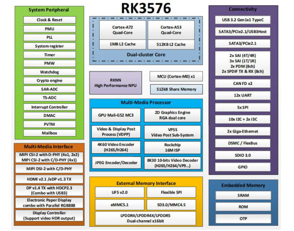 - SoC: Rockchip RK3576 (4x Cortex-A72 + 4x Cortex-A53)