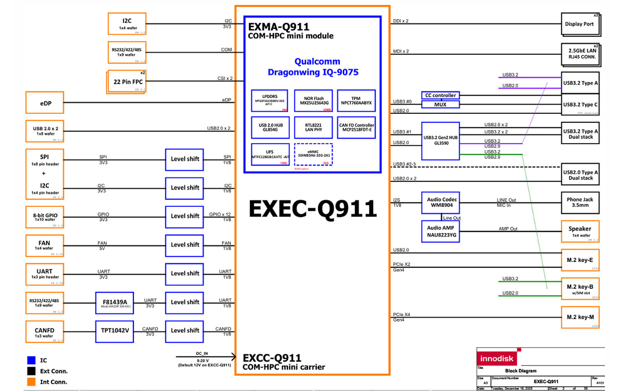Following the launch of the EXEC-Q911 COM-HPC Mini Module, Innodisk announced its high-performance, ready-to-use edge AI starter kit that would be used in robotics, smart infrastructure, vision systems, and other edge AI-intensive applications using the new Qualcomm Dragonwing IQ-9075 SoC.