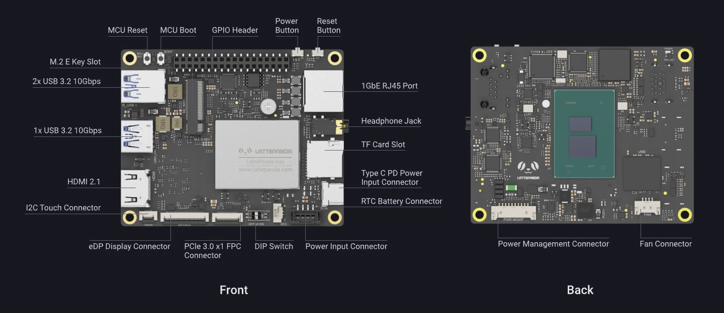 The LattePanda IOTA, based on embedded systems, IoT gateways, and edge computing, is a straight continuation of the LattePanda V1. It has the same small size of 88mm x 77mm, which will fit in the same accessories and enclosures. The co-processor, RP2040, is able to perform real-time actions like the control of a GPIO and power management, which is removed off the main CPU, and enhances system performance in general.