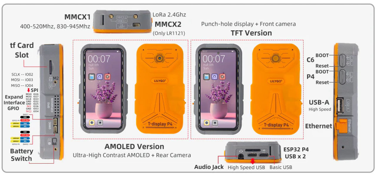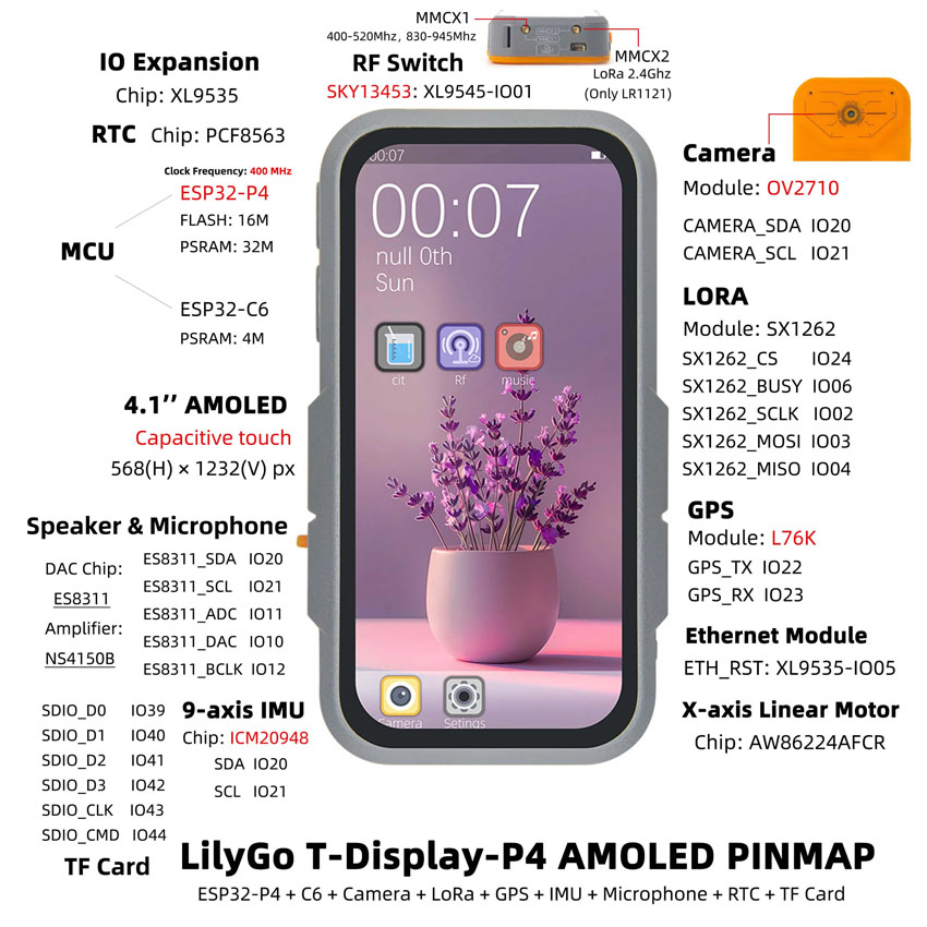 LILYGO T-Display P4 is a powerful and versatile ESP32-P4 and ESP32-C6-based development board that offers users (makers, engineers and embedded developers) a capable but small board in which to make more advanced projects. It has luxurious processing power, abundant connectivity and a big interactive screen in a smartphone form, it is suitable to use in IoT, AI and media and mobile applications.