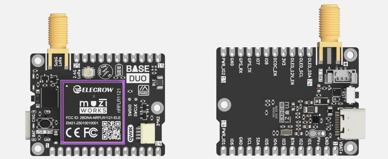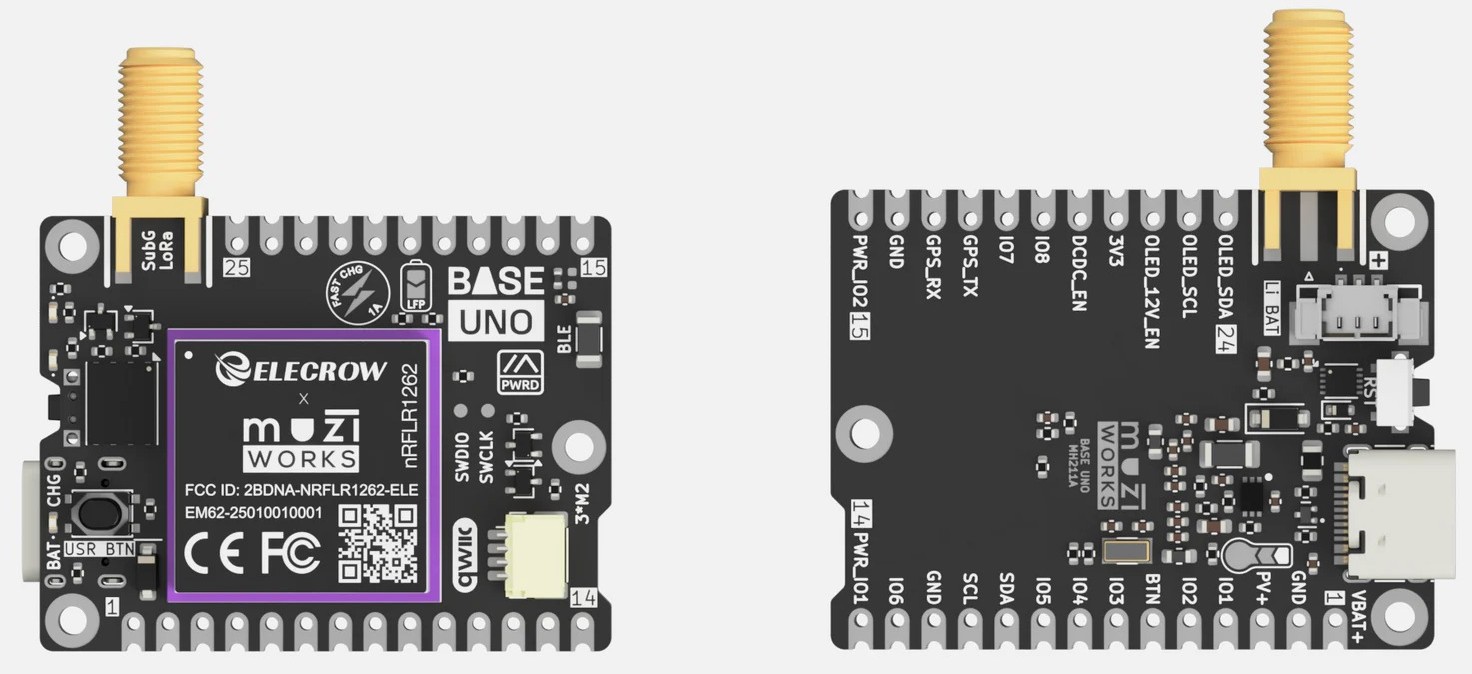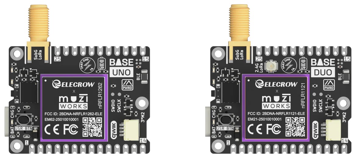 Muzi Works, in collaboration with Elecrow, introduces the Meshtastic BASE board system as a modular platform for off-grid mesh communication. The lineup features the Base Uno, Base Duo, and an optional Super IO expansion module, giving makers a standardized and power-efficient foundation for custom LoRa radios and portable communication devices. Both main boards use Nordic’s nRF52840 microcontroller, which offers low power draw and built-in Bluetooth LE for reliable wireless control.