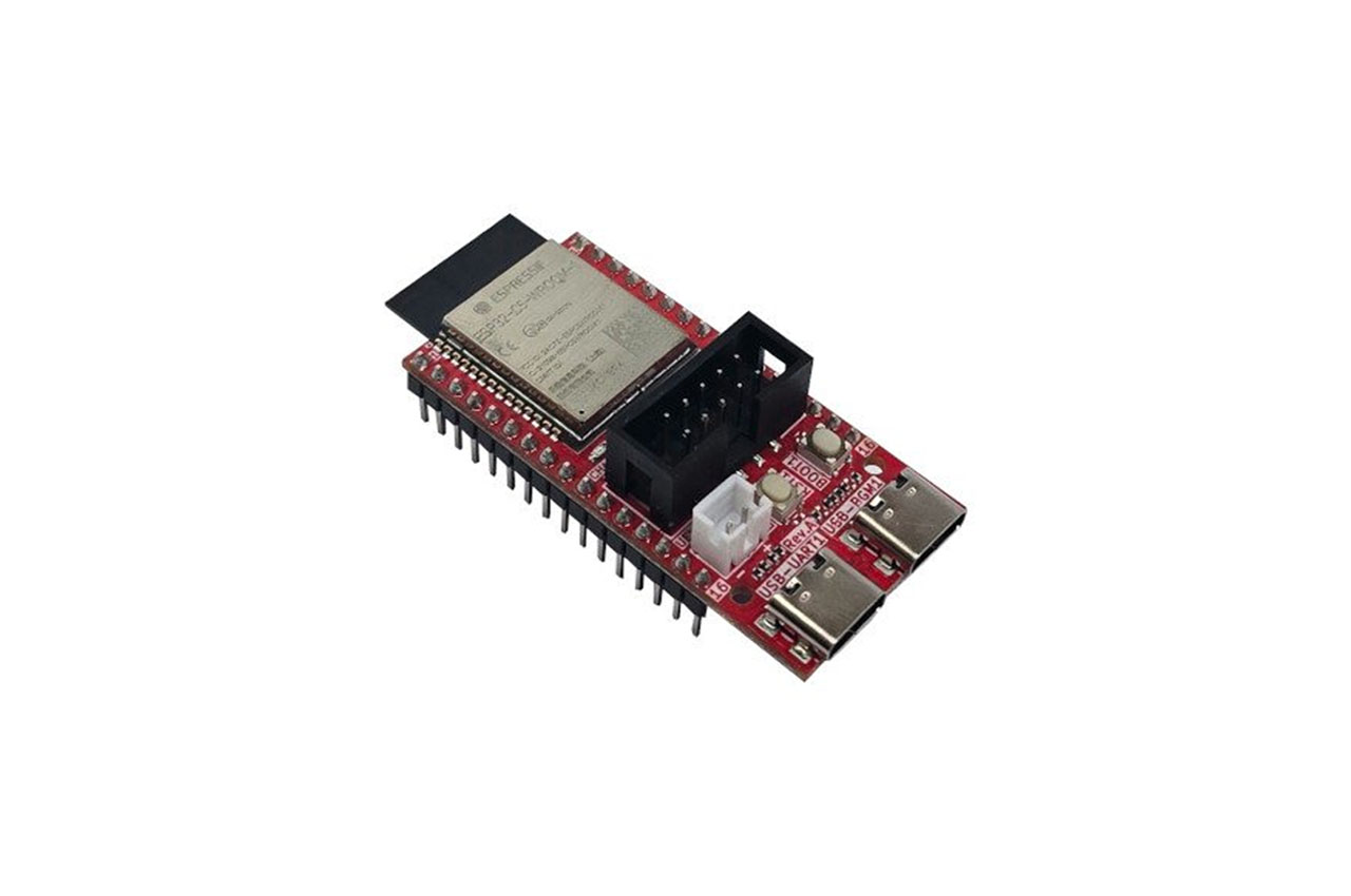 - Two USB-C ports: one for a CH340x USB-serial adapter (for programming/serial) and one for native USB (power + JTAG debug).