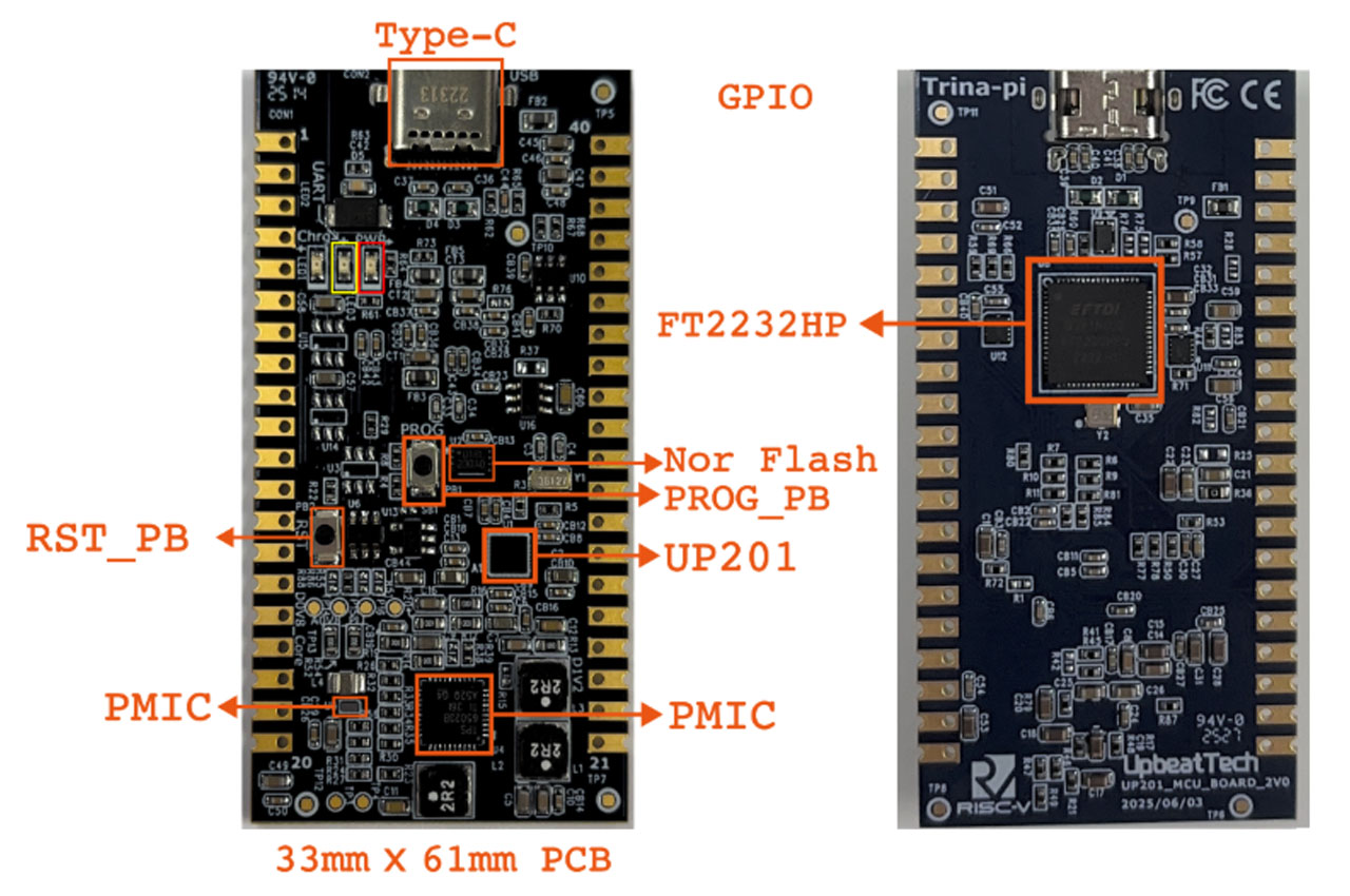 Also, the company launched the UP201 MCU Board: Trina-Pi is a small development board that is constructed based on the UP201 SoC by Upbeat Technology, a low-power edge AI and IoT development board. It has a dual-core RISC-V processor and built-in NPUs, which allow it to effectively execute on-board AI functions such as sensor data processing, voice recognition, or gesture recognition. The board provides the necessary interfaces that include GPS interface, I2C, SPI and UART, among others, thus connection with different sensors and peripherals is easy. Trina-Pi supports FreeRTOS, TensorFlow Lite Micro, and the AI SDK provided by Upbeat to enable developers to create and deploy energy-efficient AI applications within a short period. Its non-voluminous size and solid performance make it suitable for wearable technology, smart home devices, and battery-powered edge systems.